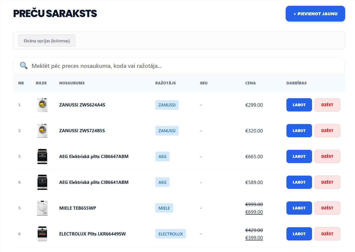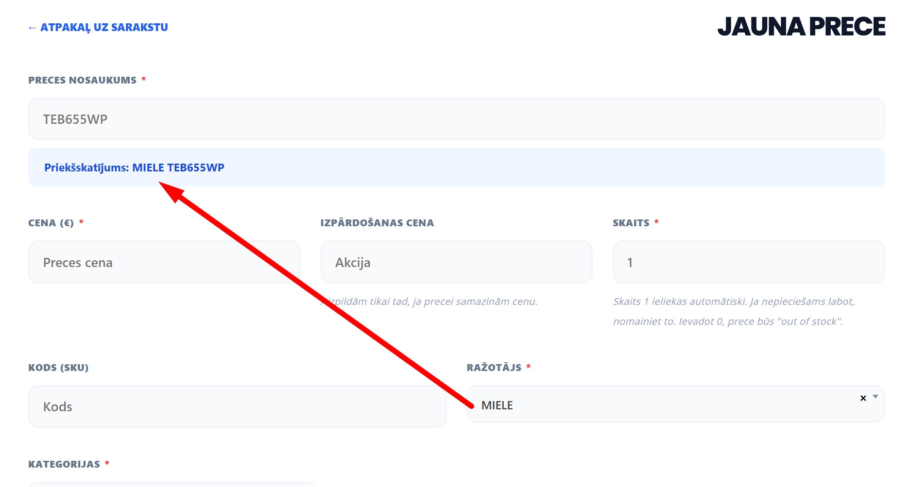 -Nosaukumu ģenerēšana pēc šablona (piem. {Ražotājs} {Nosaukums}).