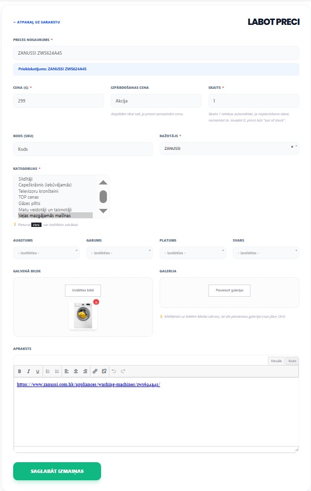 – Pārņem “Edit Product” saites admin barā un sarakstā.